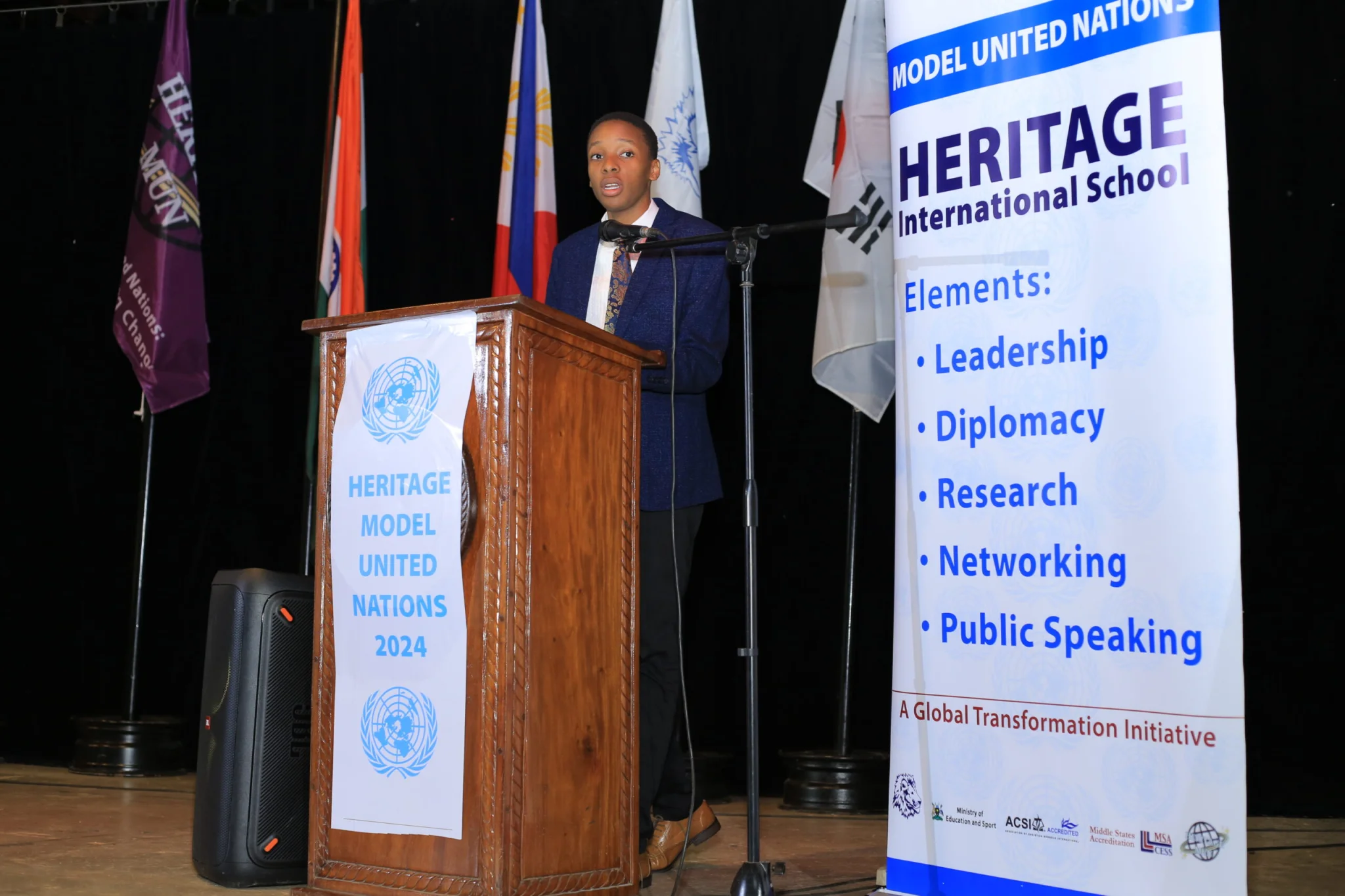 The Heritage Model United Nations Conference simulates the UN. Students conduct country research topic research and issue analysis concerning the UN theme of the year. Our students use this platform to nurture and grow their skills weekly.